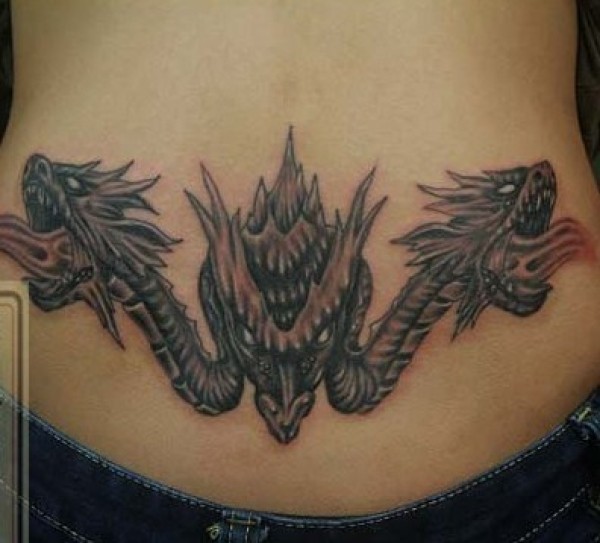 十分诡异的三头龙纹身图案在腰部纹上一个这样_腰部纹身图案大全_纹身图吧
