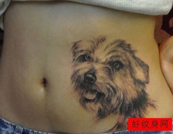 女生腰部宠物狗纹身图丝毛狗纹身图案_腰部纹身图案大全_纹身图吧