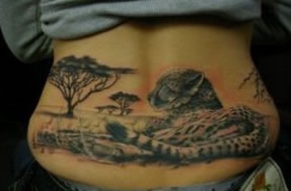腰部豹子图案纹身正在休憩的豹子图案纹身_腰部纹身图案大全_纹身图吧