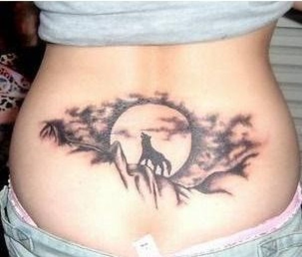 月光下的狼嚎纹身其实是一款风景写意纹身图,_腰部纹身图案大全_纹身图吧