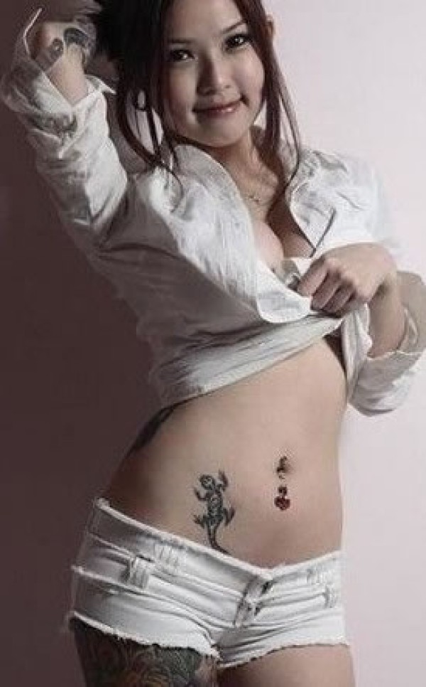 腰腹部的壁虎图案纹身壁虎图案不感觉怎么样,_腰部纹身图案大全_纹身图吧