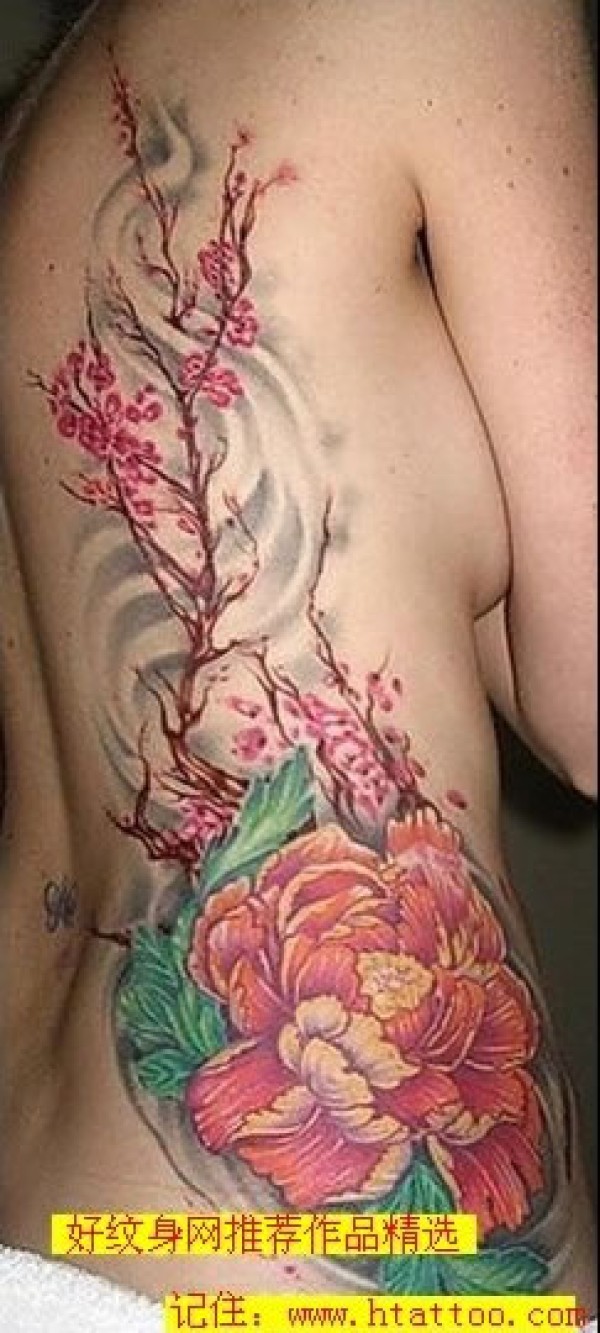 美女侧腰梅花纹身_腰部纹身图案大全_纹身图吧