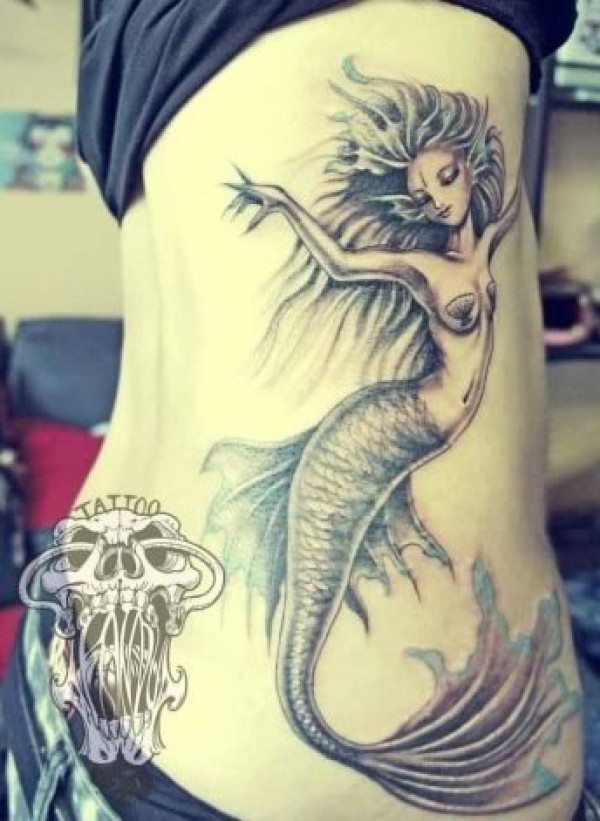 侧腰上非常有趣的美女鱼纹身图案蜂腰美人鱼纹_腰部纹身图案大全_纹身图吧