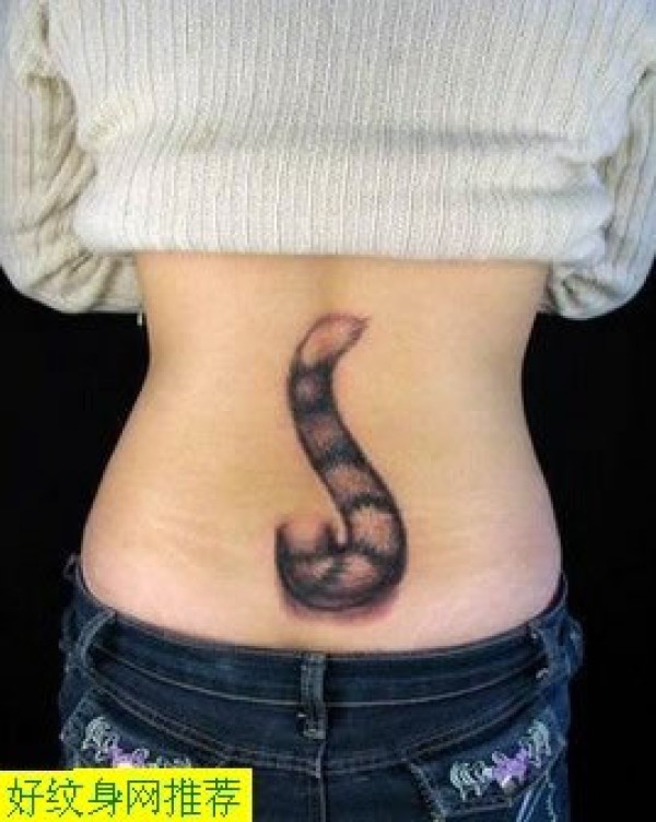 腰部假象的尾巴纹身图毛茸茸的动物尾巴图案纹_腰部纹身图案大全_纹身图吧