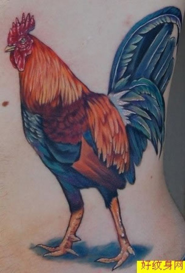 腰部彩绘的大公鸡纹身图纹身不错,公鸡的战斗_腰部纹身图案大全_纹身图吧