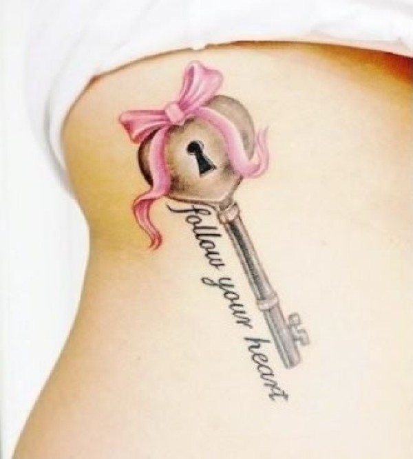 各种女孩腰部的钥匙图案纹身欣赏钥匙加字母纹_腰部纹身图案大全_纹身图吧