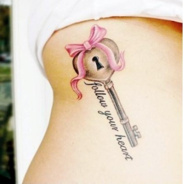 女生腰部钥匙图案纹身纹身寓意找对了钥匙你_腰部纹身图案大全_纹身图吧