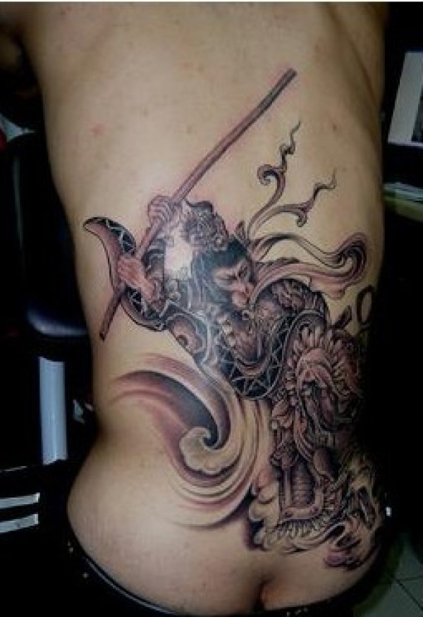 腰部悟空降妖场景图纹身看悟空这个架势,应该_腰部纹身图案大全_纹身图吧