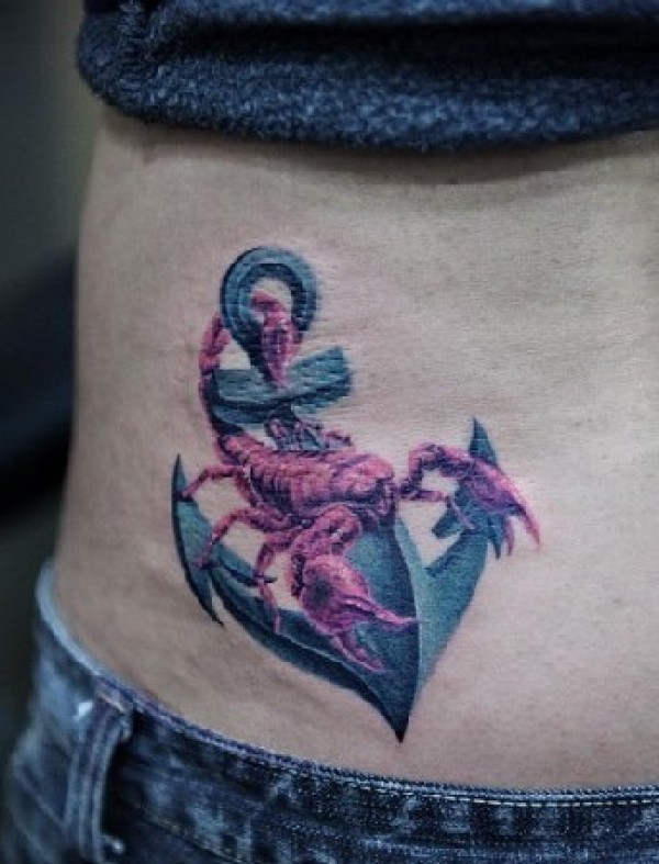 腰部彩色蝎子铁锚纹身图案纹身图片_腰部纹身图案大全_纹身图吧