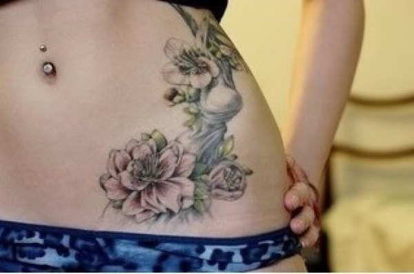 魔鬼身材美女的腰部莲花纹身图小小的局部纹身_腰部纹身图案大全_纹身图吧