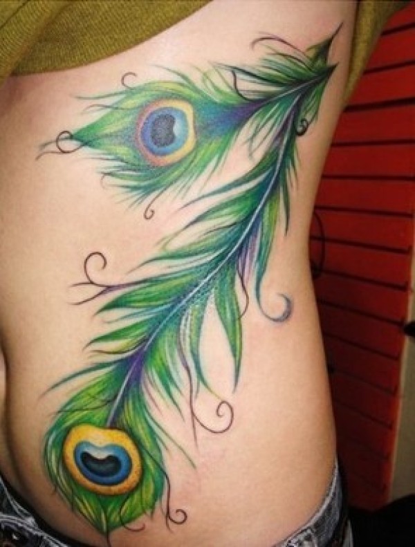 漂亮的孔雀羽毛纹身图看这纹身就知道孔雀开屏_腰部纹身图案大全_纹身图吧