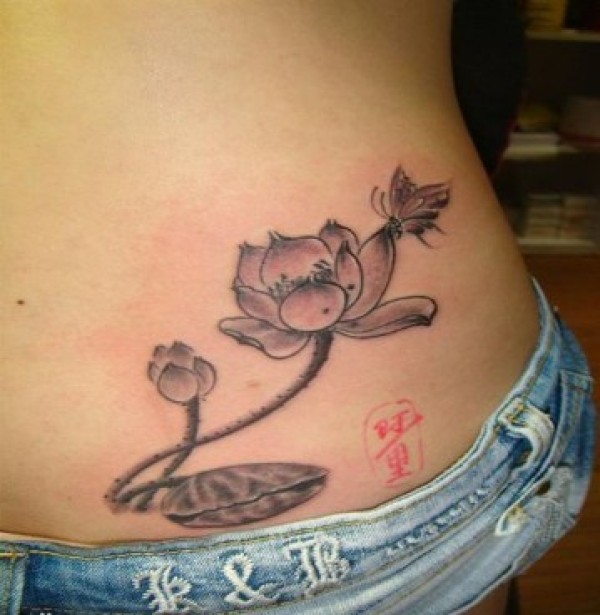 腰部莲花荷叶纹身图案纹身图片_腰部纹身图案大全_纹身图吧