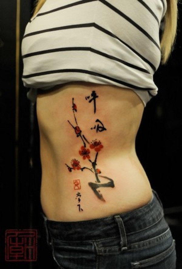 美女侧腰梅花纹身_腰部纹身图案大全_纹身图吧