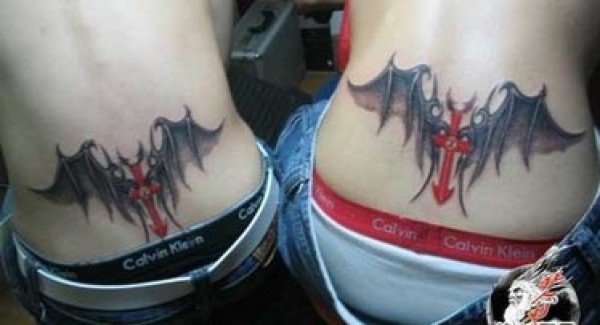 腰部蝙蝠翅膀加剑体情侣纹身这俩人不但纹的情_腰部纹身图案大全_纹身图吧