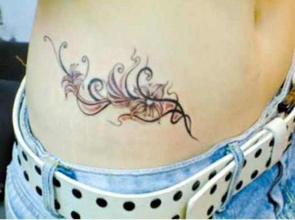 女生腰部带花的枝条纹身纹身里边的花儿盛开的_腰部纹身图案大全_纹身图吧