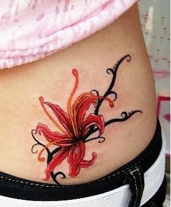 腰部盛开的花卉图案纹身纹身解读为鲜花赠佳_腰部纹身图案大全_纹身图吧