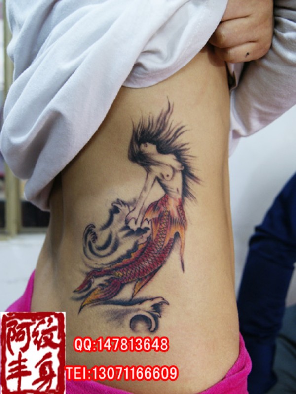 尾部嫣红色美人鱼纹身图案这款纹身有单一的黑_腰部纹身图案大全_纹身图吧
