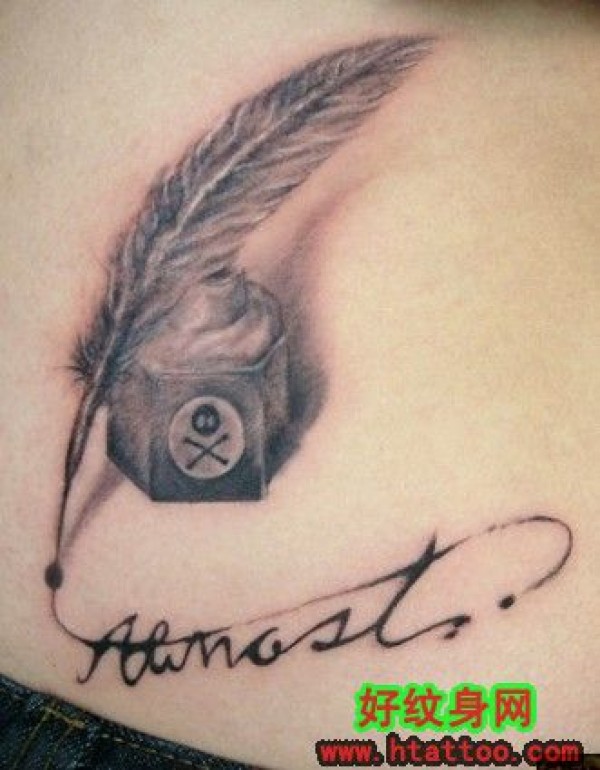 腰部复古鸡毛笔纹身_腰部纹身图案大全_纹身图吧
