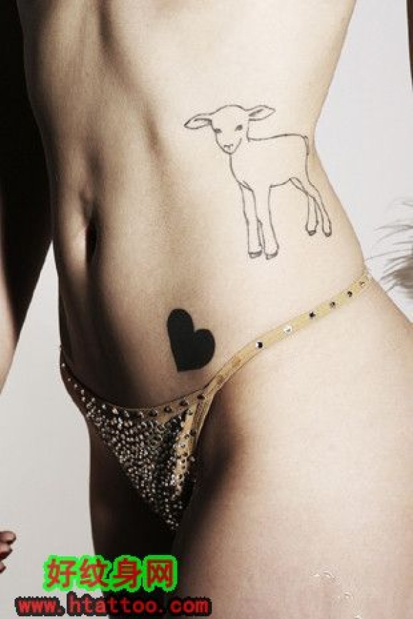 女生腰部小鹿、心纹身_腰部纹身图案大全_纹身图吧