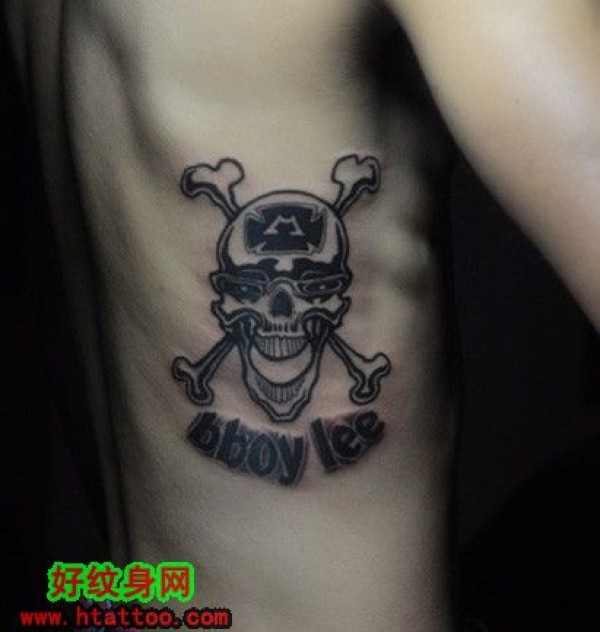 男人腰部骷髅英文纹身_腰部纹身图案大全_纹身图吧