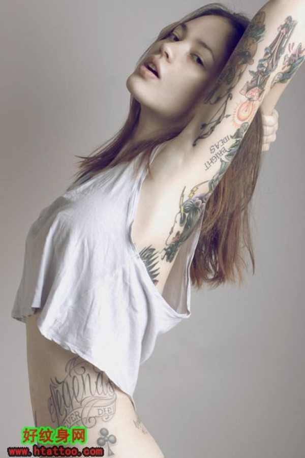 女生手臂腰部肖像图腾纹身_腰部纹身图案大全_纹身图吧