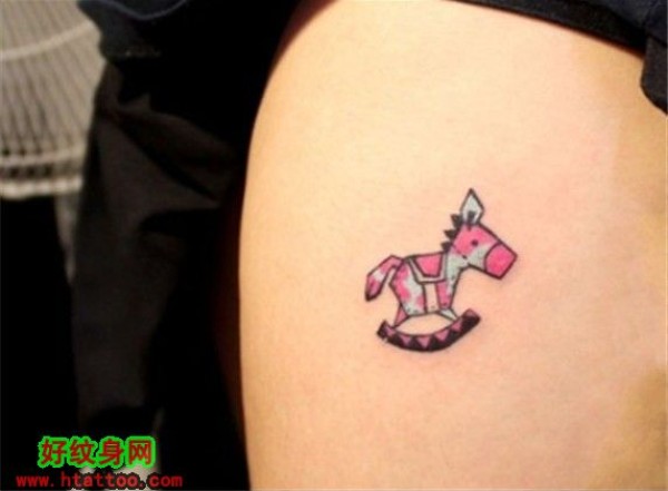女生腰部彩色木马可爱纹身_腰部纹身图案大全_纹身图吧