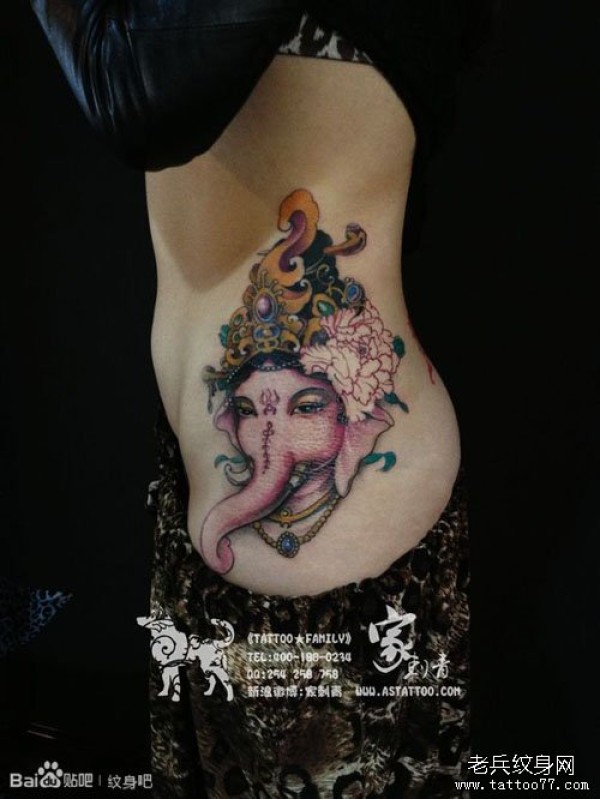 美女腰部唯美好看的象神纹身图案_腰部纹身图案大全_纹身图吧