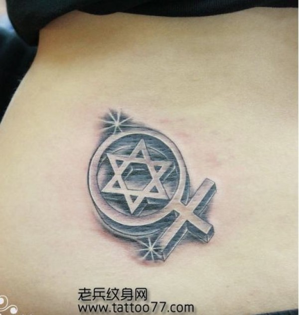 唯美时尚的腰部六芒星纹身图案_腰部纹身图案大全_纹身图吧