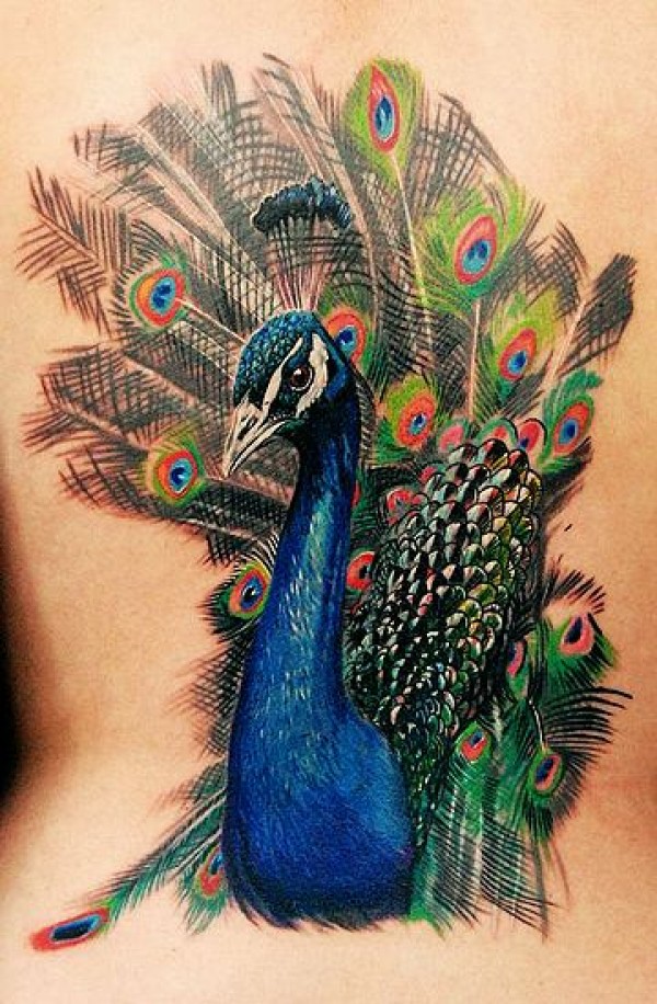 腰部纹身图案美女腰部彩色孔雀纹身图案_腰部纹身图案大全_纹身图吧
