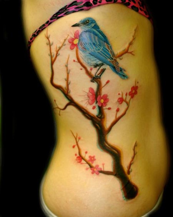 侧腰纹身图案侧腰梅花小鸟纹身图案_腰部纹身图案大全_纹身图吧