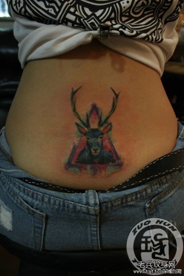 美女后腰时尚潮流的彩色小鹿纹身图案_腰部纹身图案大全_纹身图吧