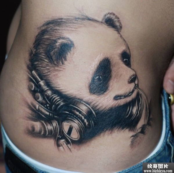 熊猫头像腰部纹身图案图片_腰部纹身图案大全_纹身图吧