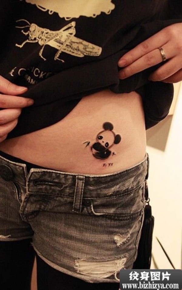 侧腰熊猫吃竹子水墨刺青图案图片_腰部纹身图案大全_纹身图吧