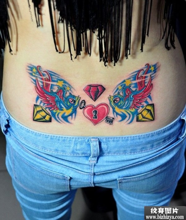 彩色燕子钻石腰部纹身图案图案图片_腰部纹身图案大全_纹身图吧