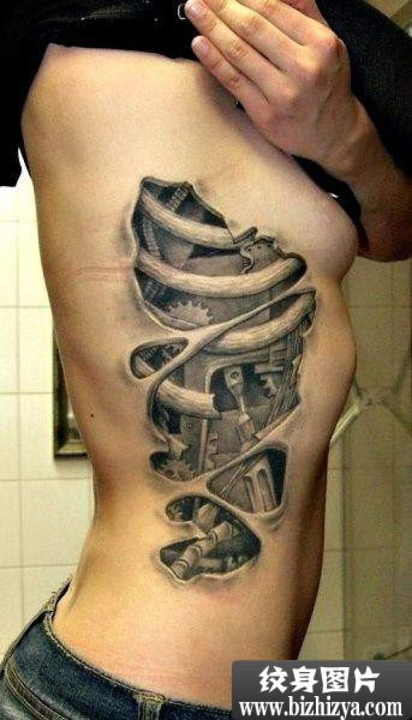 侧腰另类器官刺青图案图片_腰部纹身图案大全_纹身图吧