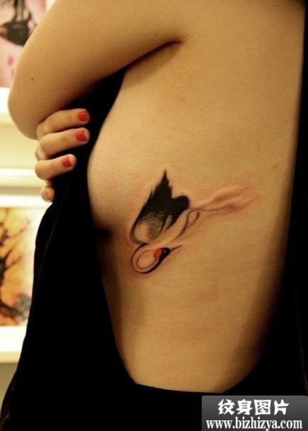 腰部抽象水墨丹顶鹤图案图片_腰部纹身图案大全_纹身图吧