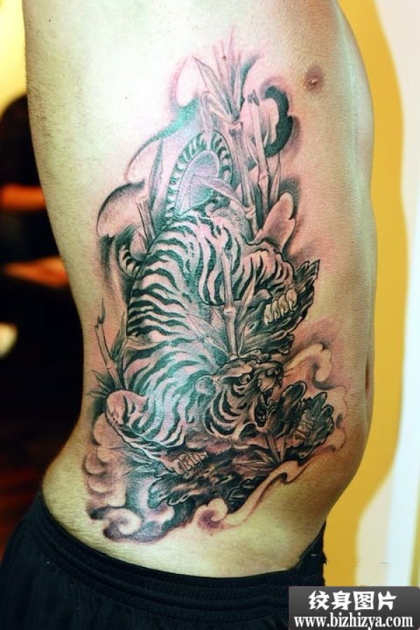侧腰霸气老虎刺青图案图片_腰部纹身图案大全_纹身图吧