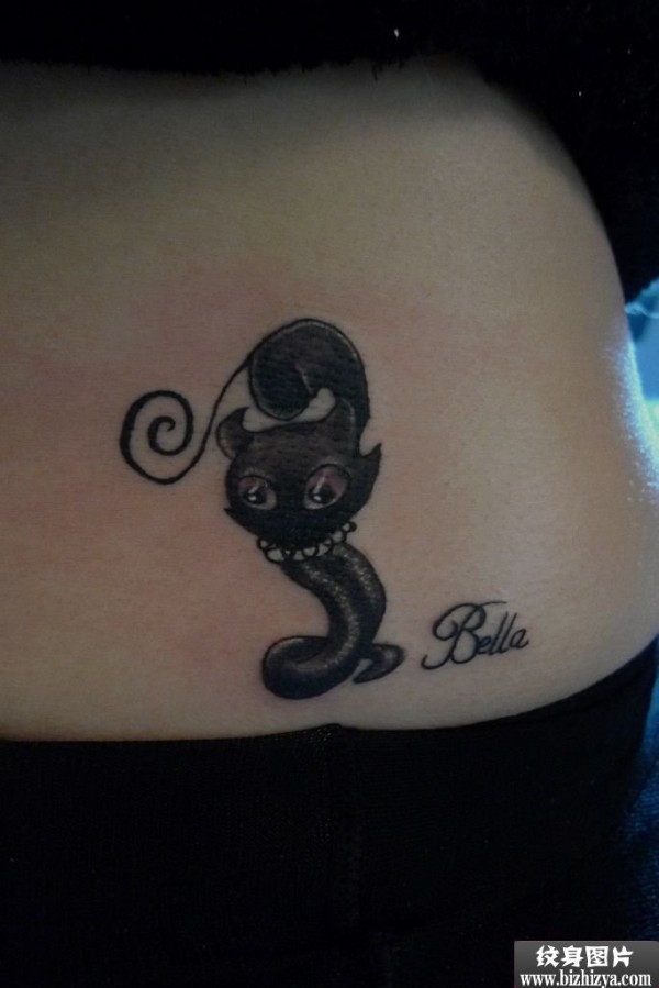 后腰性感猫咪纹身图案图案图片_腰部纹身图案大全_纹身图吧
