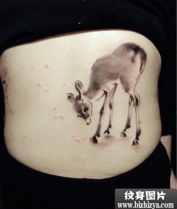 侧腰小鹿国画个性时尚纹身图案图片_腰部纹身图案大全_纹身图吧