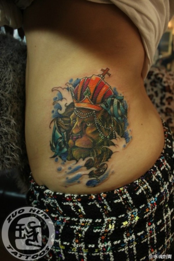 腰部一款时尚经典的狮子王纹身图案_腰部纹身图案大全_纹身图吧