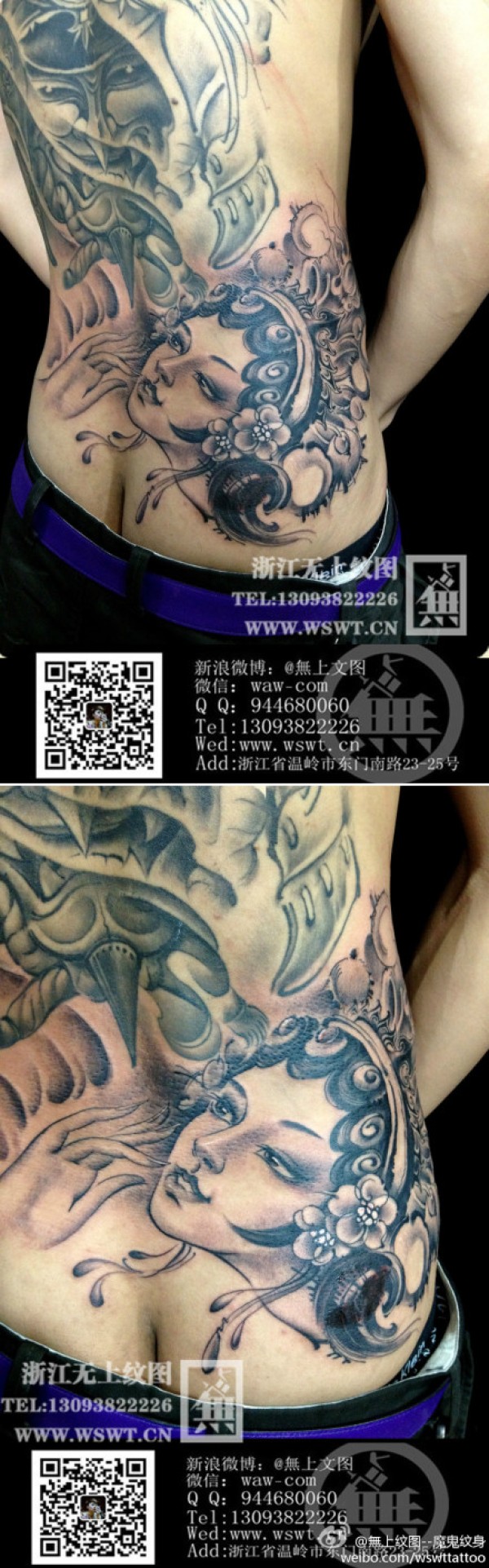 腰部漂亮潮流的美女花旦纹身图案_腰部纹身图案大全_纹身图吧
