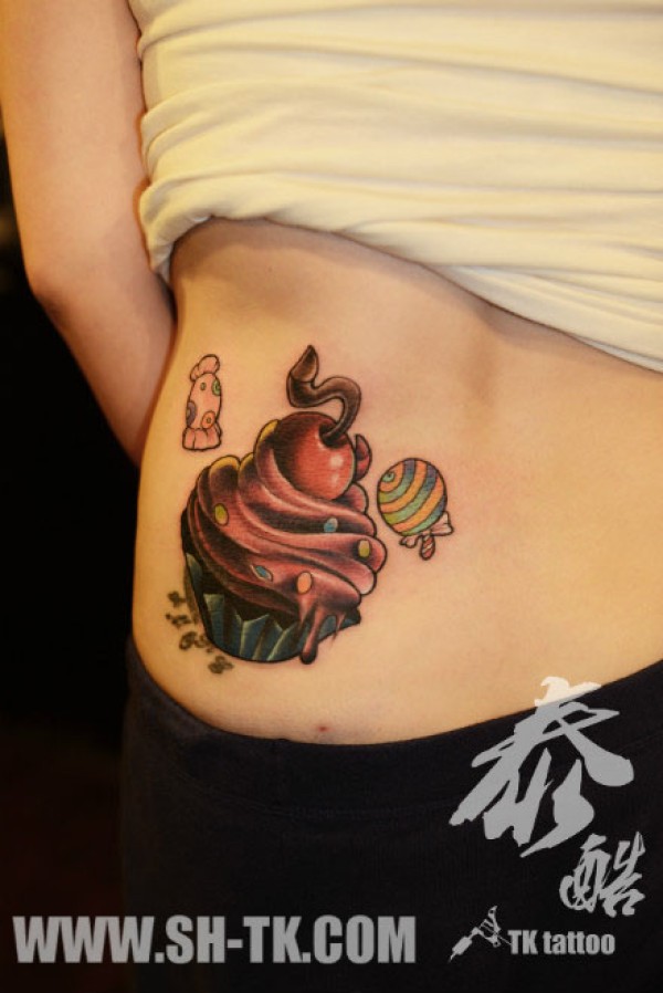 美女腰部潮流时尚的冰激凌纹身图案_腰部纹身图案大全_纹身图吧