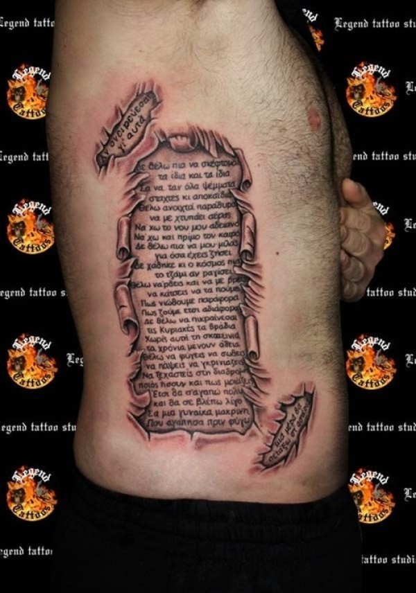 推荐一款霸气的侧腰撕皮文字纹身图案_腰部纹身图案大全_纹身图吧