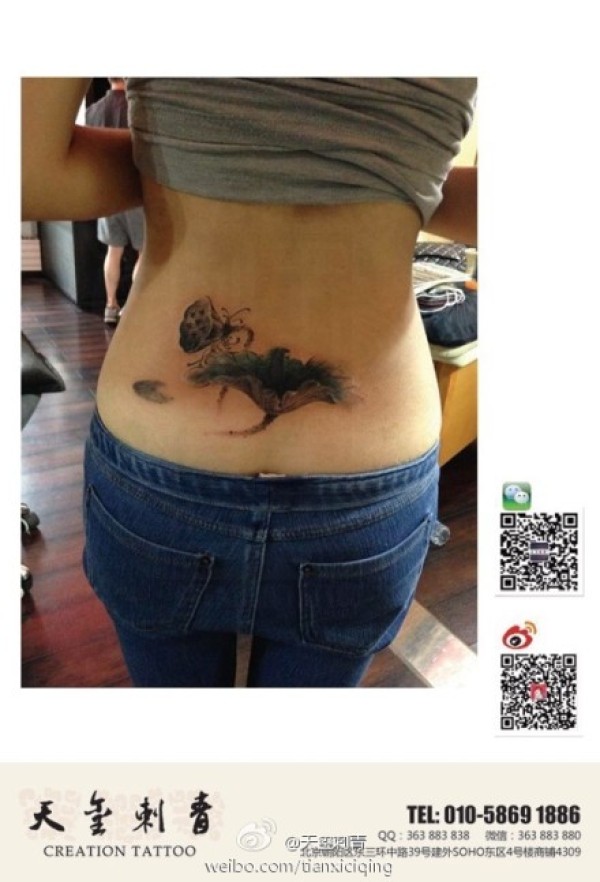 美女腰部潮流时尚的水墨写意莲花纹身图案_腰部纹身图案大全_纹身图吧