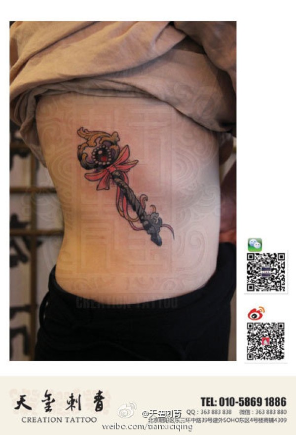 美女侧腰时尚精美的钥匙纹身图案_腰部纹身图案大全_纹身图吧