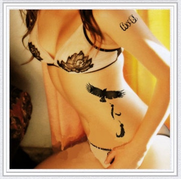 美女一款好看的侧腰老鹰纹身图案_腰部纹身图案大全_纹身图吧