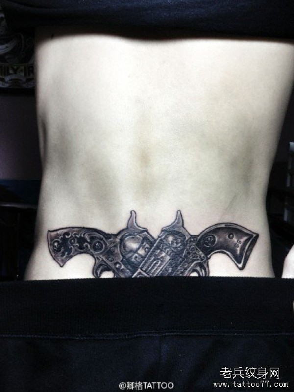 男人后腰超帅经典的手枪纹身图案_腰部纹身图案大全_纹身图吧