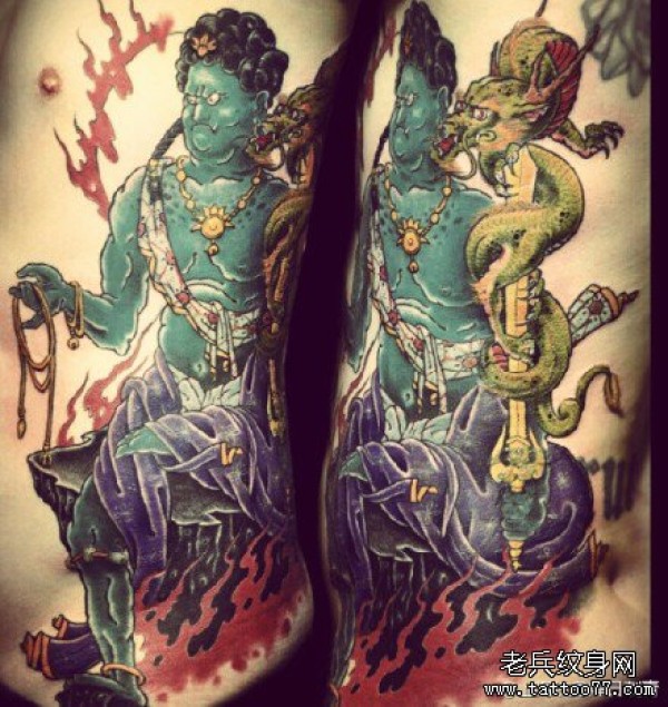 男人侧腰经典很酷的不动明王纹身图案_腰部纹身图案大全_纹身图吧