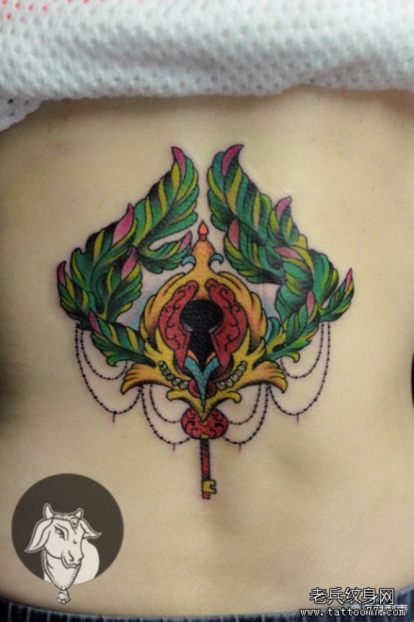美女腰部潮流漂亮的钥匙与锁纹身图案_腰部纹身图案大全_纹身图吧