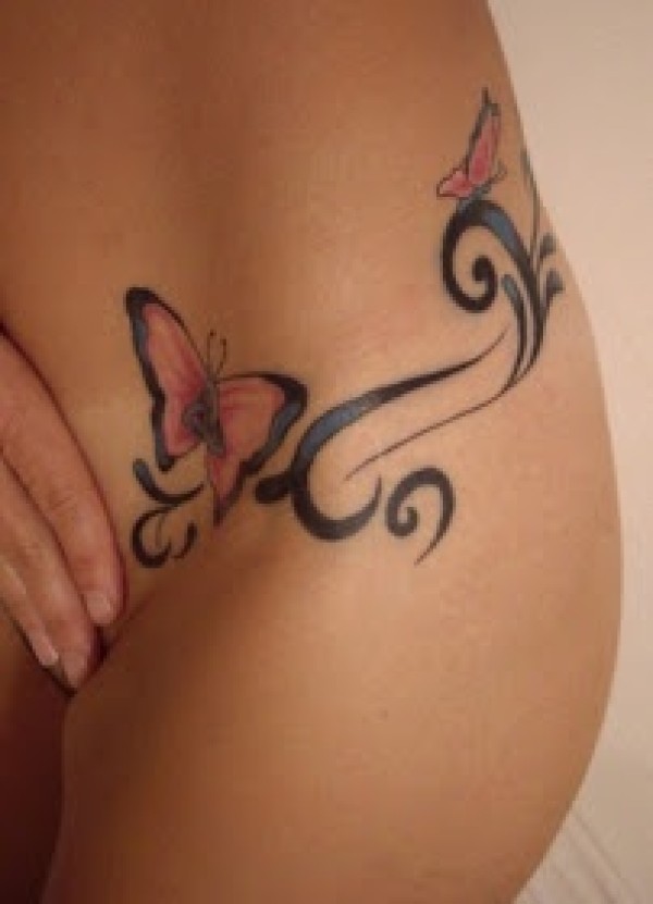 推荐一款腰部蝶恋花纹身图案_腰部纹身图案大全_纹身图吧